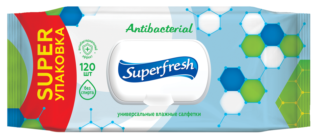 Салфетки антибактериальные влажные Super Fresh, (120 шт.) - мягко и заботливо очищают нежную кожу мамы и малыша. Благодаря особому сочетанию очищающих и антибактериальных компонентов, салфетки удаляют с кожи различные загрязнения, устраняет бактерии, а сбалансированная формула обеспечивает увлажнение и дарит ощущение свежести.